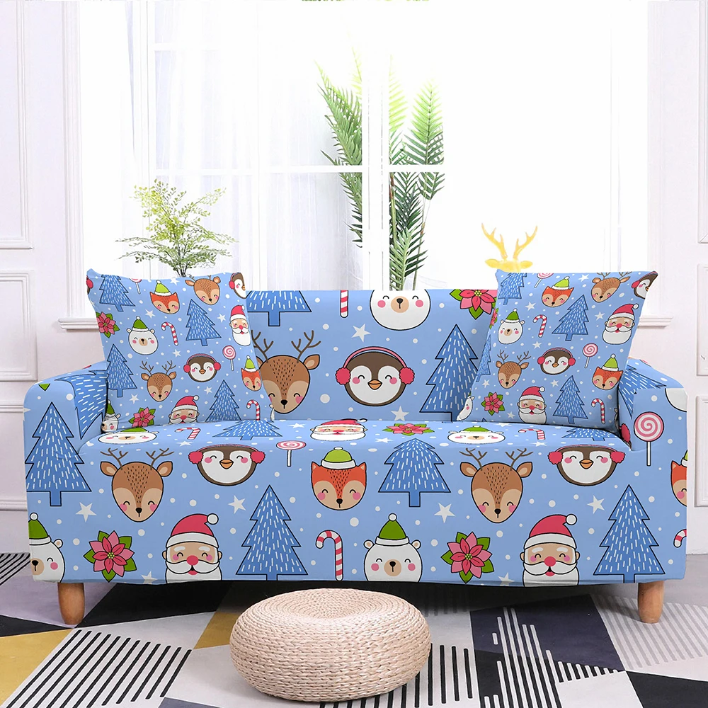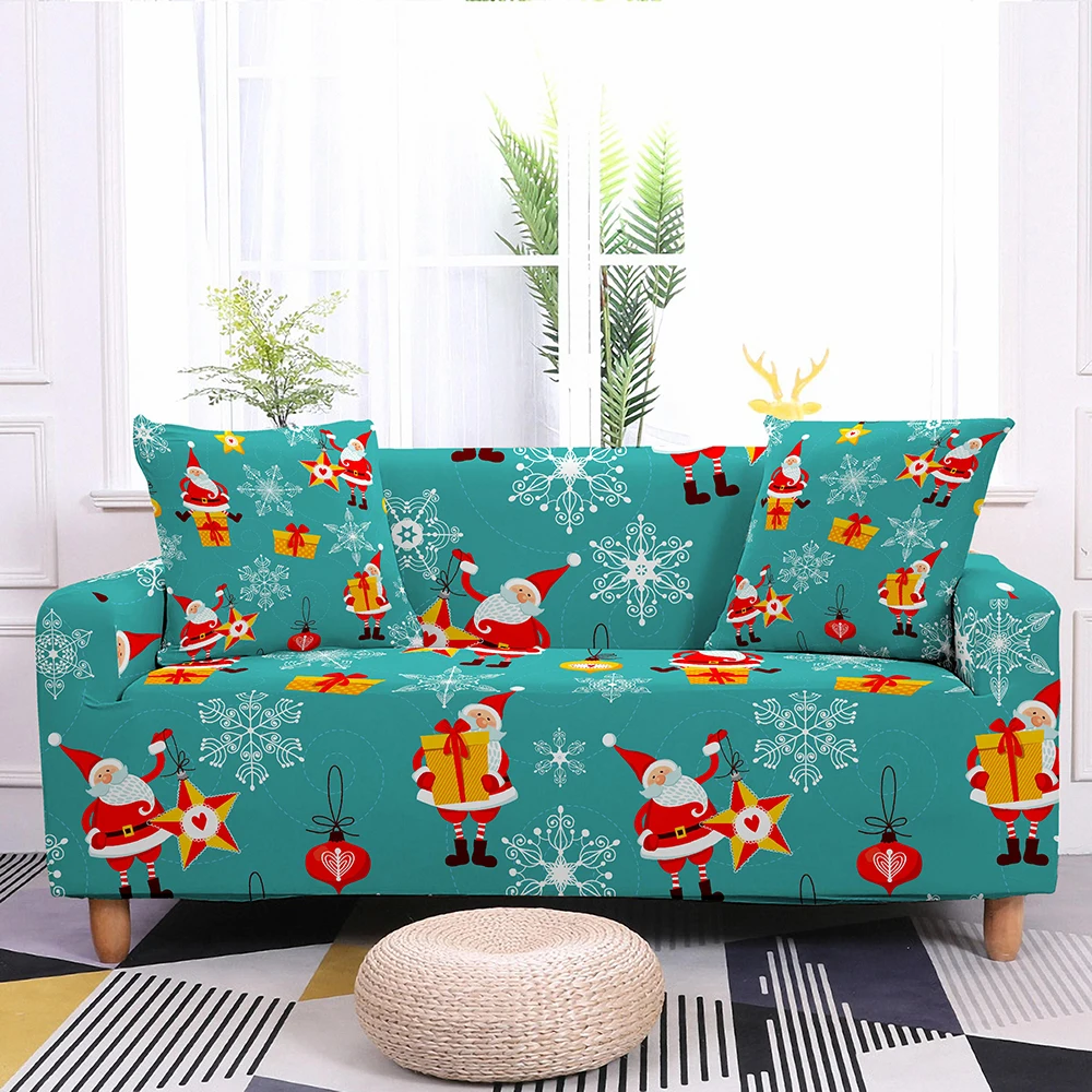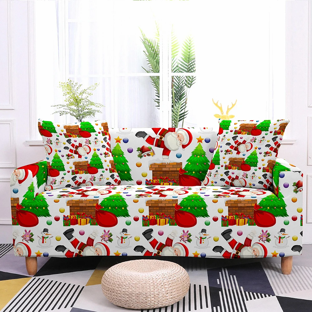 Рождественский чехол для дивана с дедом морозом, Рождественский эластичный чехол для дивана для гостиной, полиэстеровый чехол для дивана
