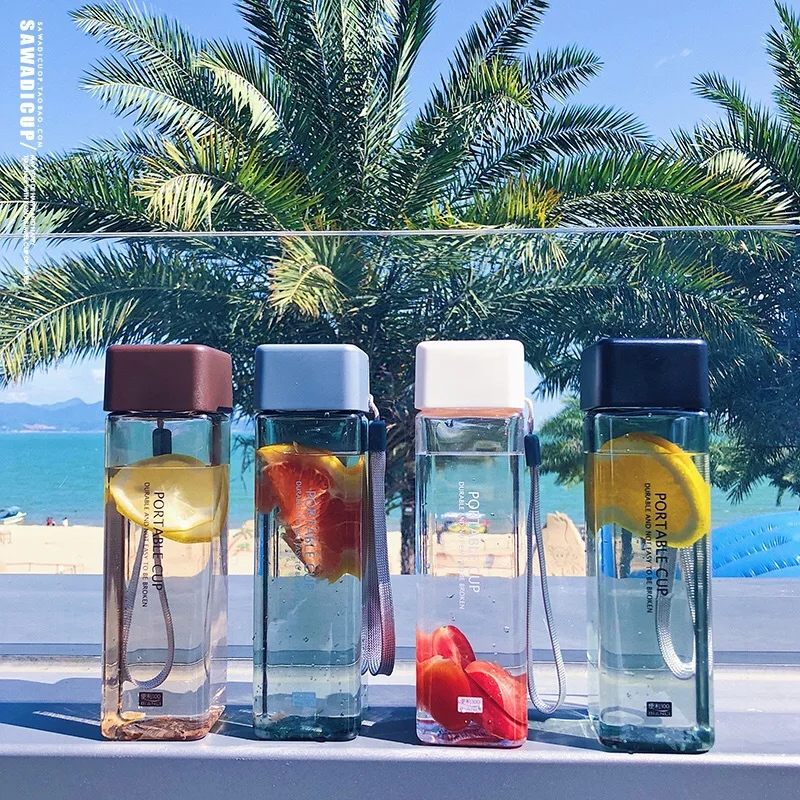 Термостойкая Термокружка для воды, квадратная чашка с веревкой для чая, молока, фруктов, воды, прозрачная Спортивная в Корейском стиле