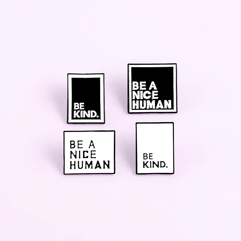 BE KIND BE A NICE HUMAN эмаль черно - белая маркировка брошь воротн...