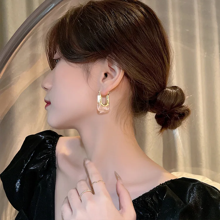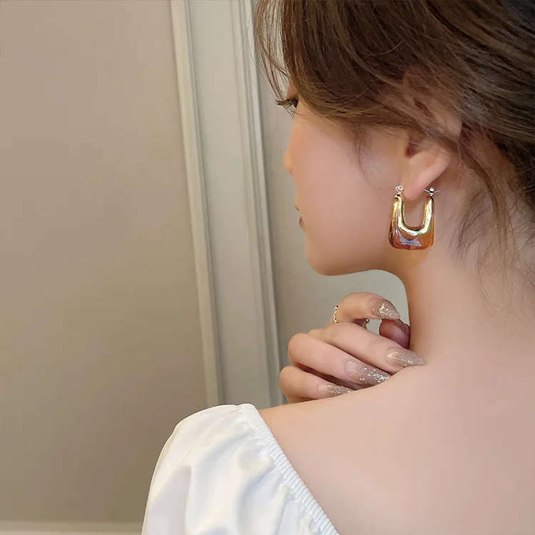 Новые корейские винтажные привлекательные геометрические U-образные акриловые Висячие серьги для женщин и девушек ювелирные изделия для свадебной вечеринки подарок 1S223
