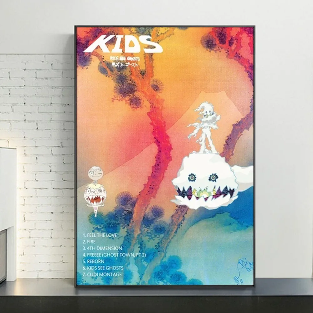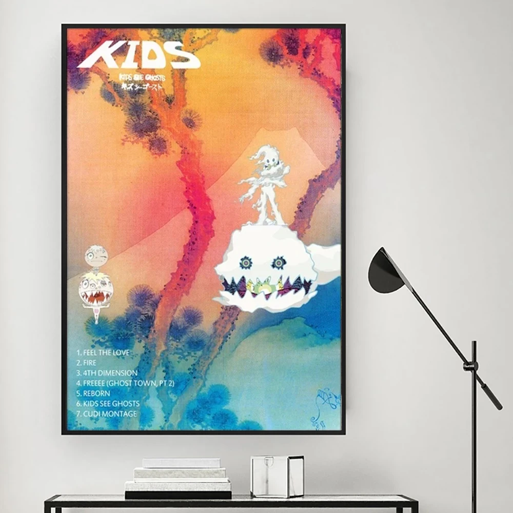 Настенный постер, поп-музыка, холст, картина, Канье, Уэст, малыш, куди-дети, смотрите призраки, альбом, настенные картины для гостиной