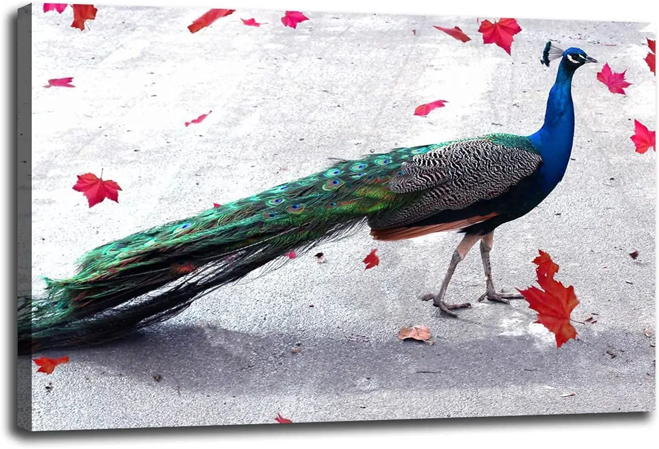 Красивая Картина на холсте с павлином, красивое ретро искусство на ...
