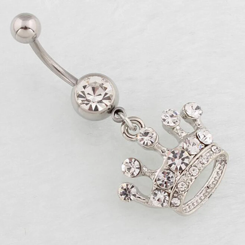 Висячая императорская корона, белый пупок, модные женские украшения для пирсинга, кольцо для пупка, стальное