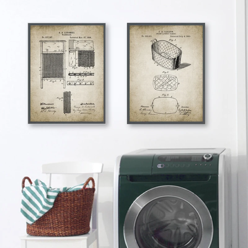 Настенное украшение для прачечной, винтажные лакированные постеры и корзины для белья с принтами, настенные картины в стиле ретро, картины на холсте