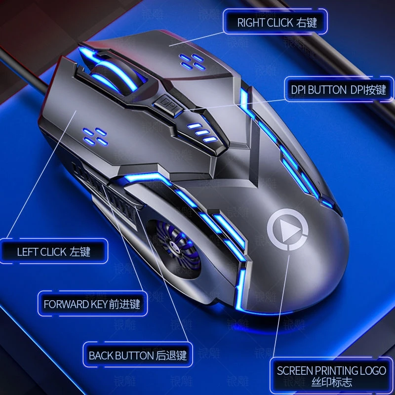 Бесшумная проводная мышь, шесть клавиш, светящаяся игра, электронна...