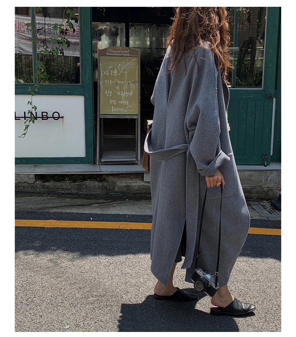 Женское шерстяное пальто со шнуровкой, длинное плотное пальто цвета...