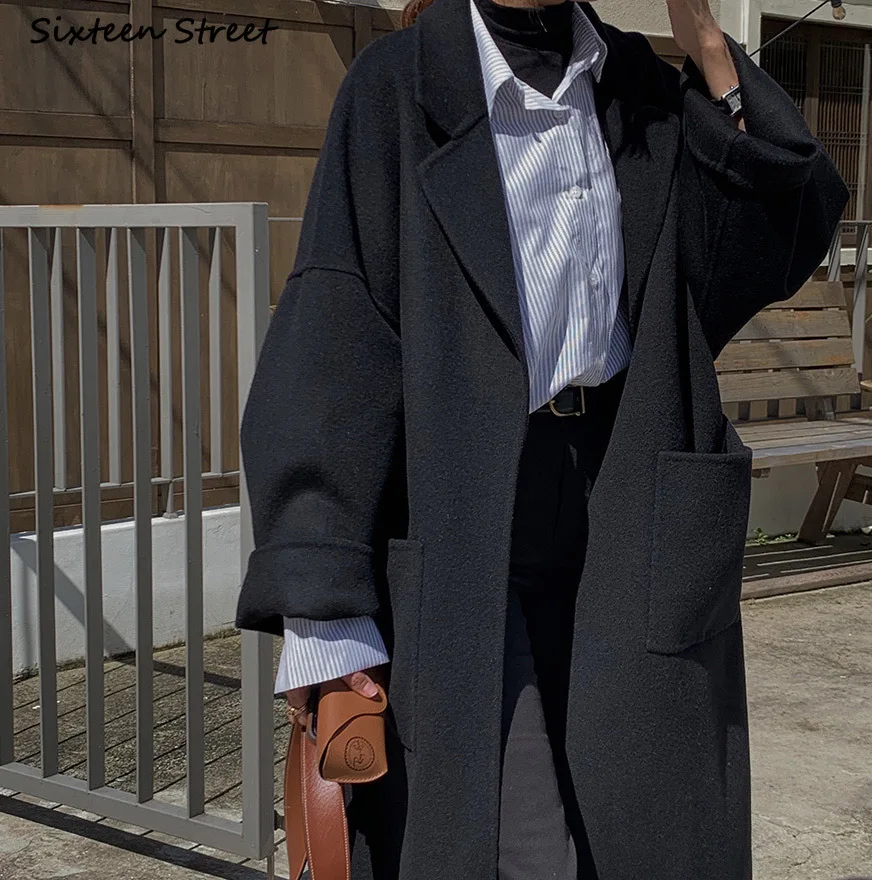 Женское двубортное пальто, длинное кашемировое пальто из смесовой ш...