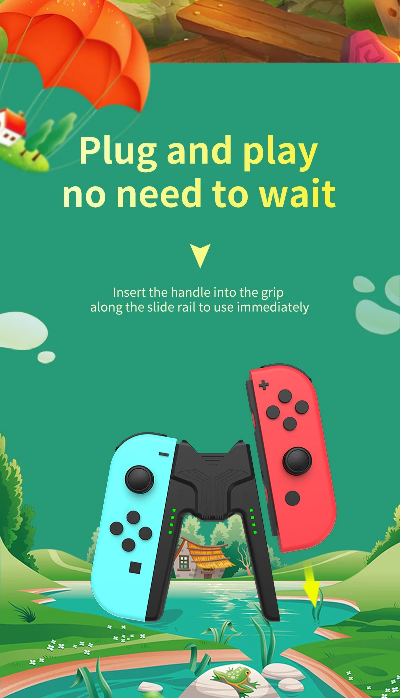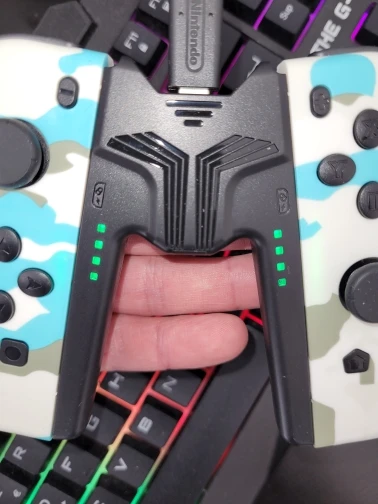 Отлично, заряжает как оригинальные, так и совместимые джойконы. Удобно держать.