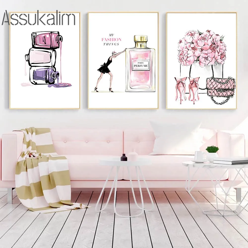 Модный настенный постер с флаконом духов, художественная живопись, ...