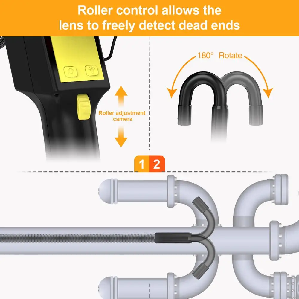 С водонепроницаемой головкой камеры IP67, вы можете использовать эндоскоп во влажных, влажных или даже подводных инспекционных работах, таких как канализация и осмотр трубопровода.