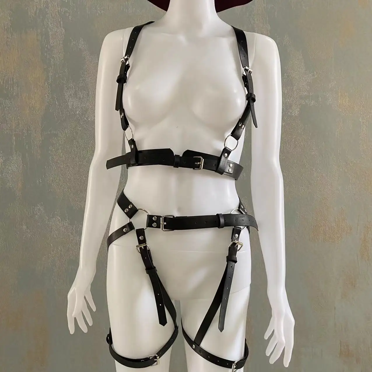 Бондаж, Женский комплект, сексуальное тело, подвязка, пояс в стиле панк, готика, эротический нагрудный ремень, подвязки для ног, сексуальные подвязки для фетиша