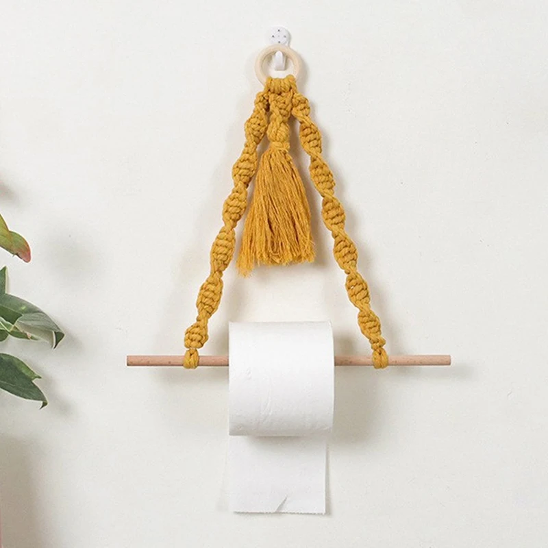 Деревянная веревка для полотенец, макраме, держатель для туалетной бумаги, подвесной гобелен, бытовое искусство, Полка для полотенец, декоративные принадлежности