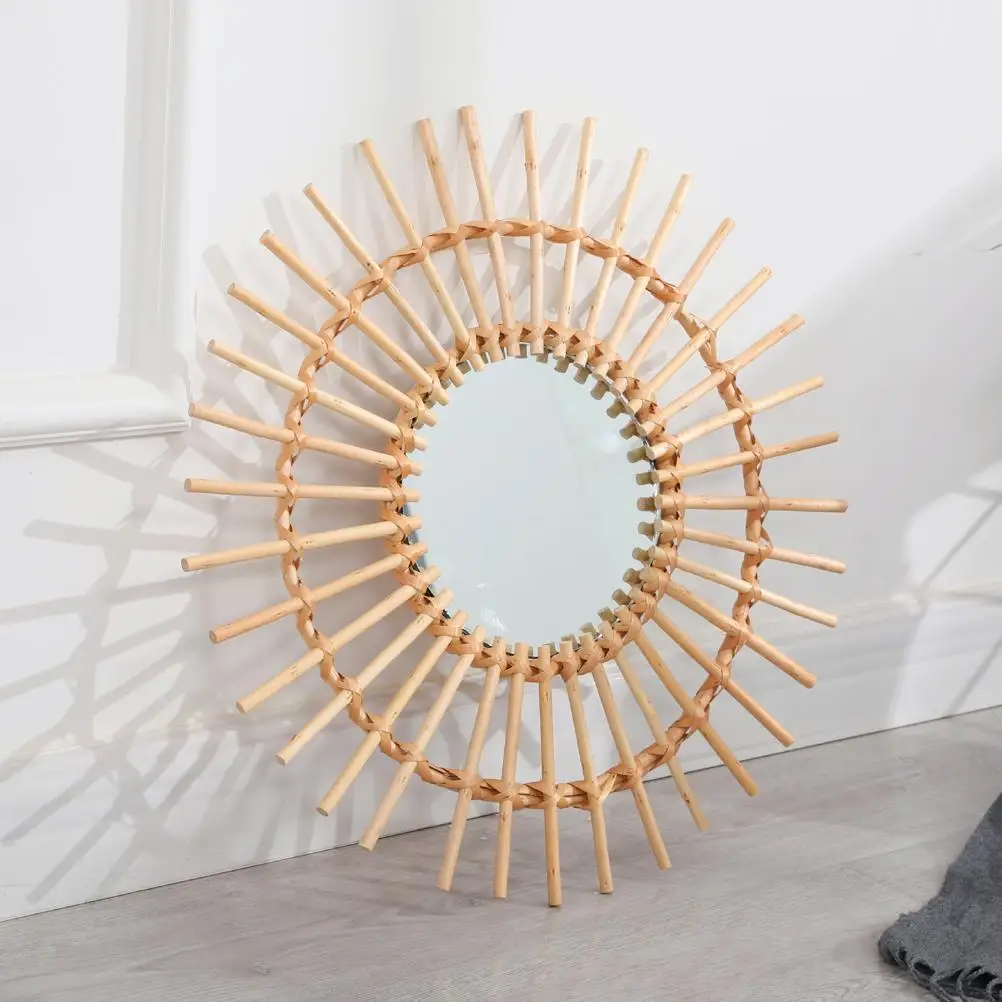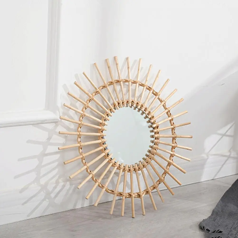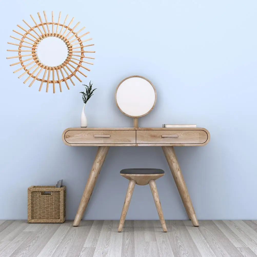 Ротанговое и стеклянное Настенное подвесное зеркало ручной работы из ротанга зеркало для макияжа для ванной туалетной комнаты украшение для дома