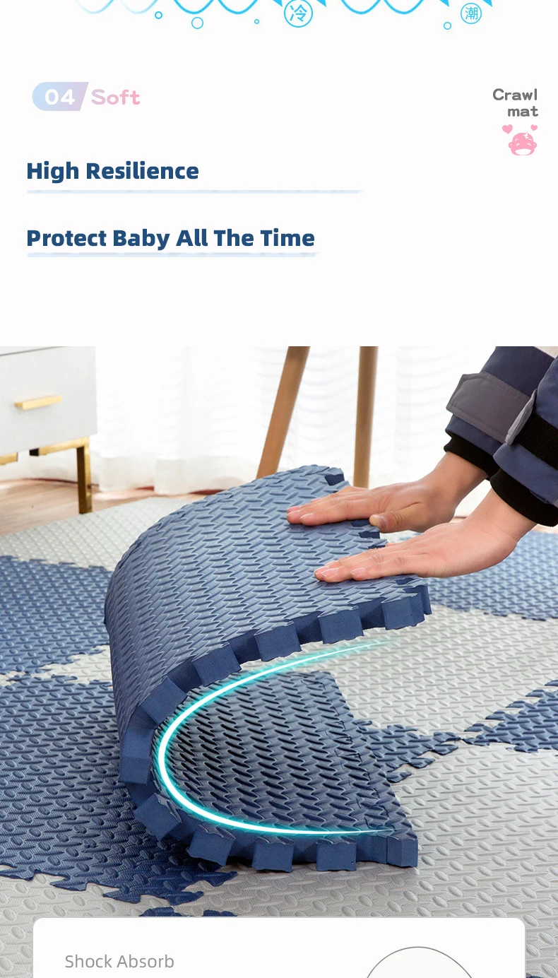 Изготовлен из мягкой пены EVA, безвреден для вашего ребенка. Безопасный, водонепроницаемый, легко чистится.