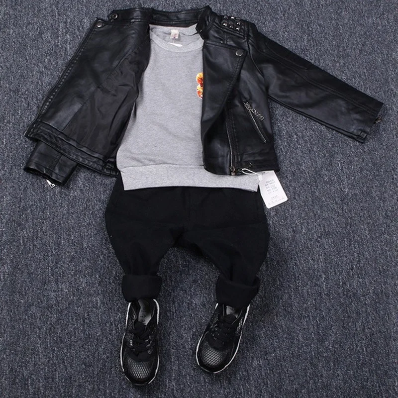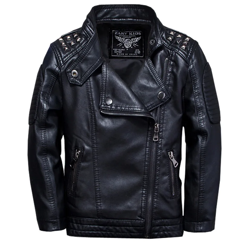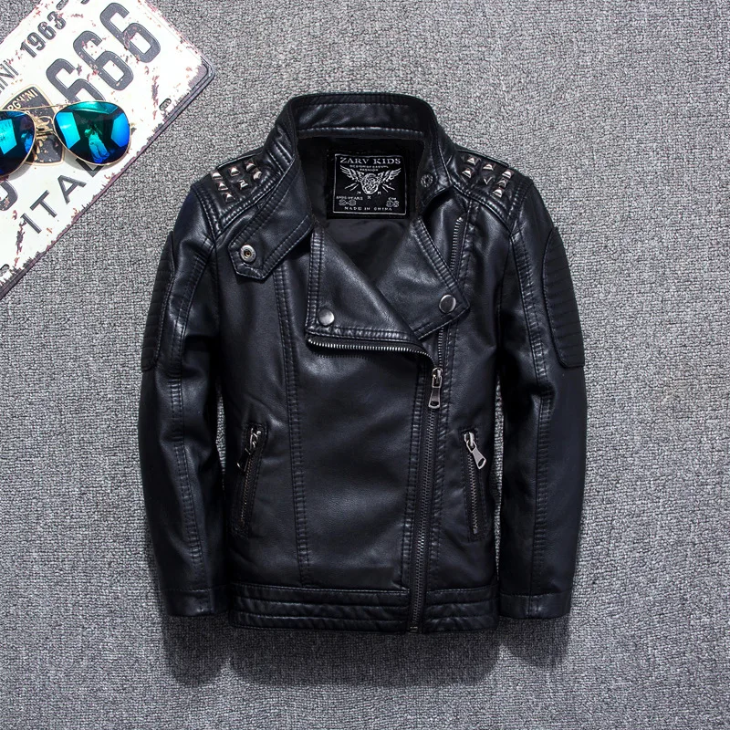 Куртка из искусственной кожи для мальчиков, модное пальто с металли...