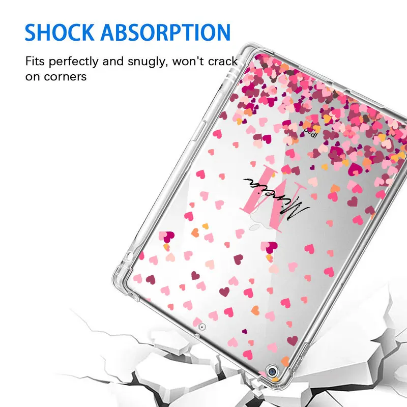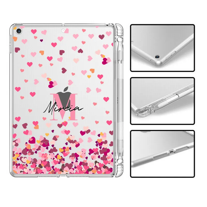 Прозрачный силиконовый чехол с именем на заказ, с держателем для ручек, для 10,9 дюймов Air 4 2020 9,7 5th 6th 10,2 7th 8th 12,9 iPad Pro 2021