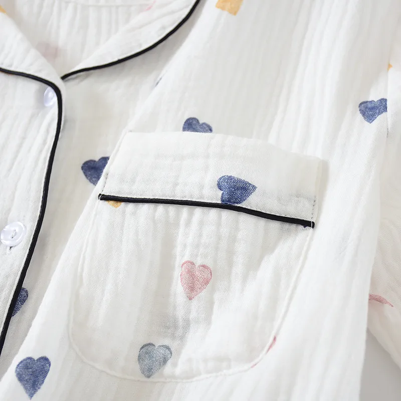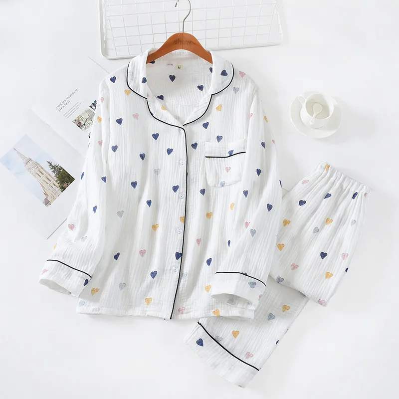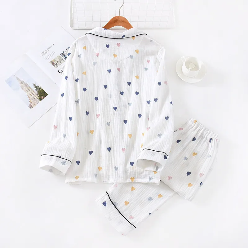 2 шт., Женская Хлопковая пижама с длинным рукавом и принтом сердца