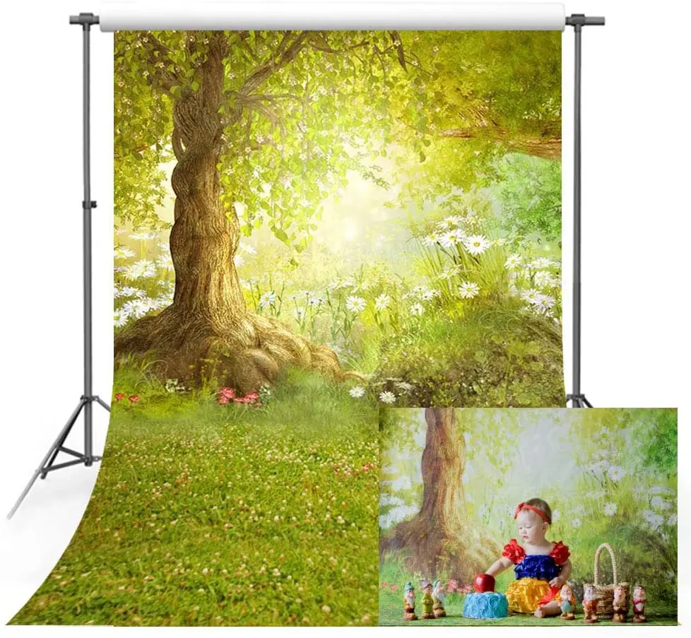 Весенний фон для фотосъемки Пасхальный большой лес Луг трава белый цветок Сказочный фон для фотостудии
