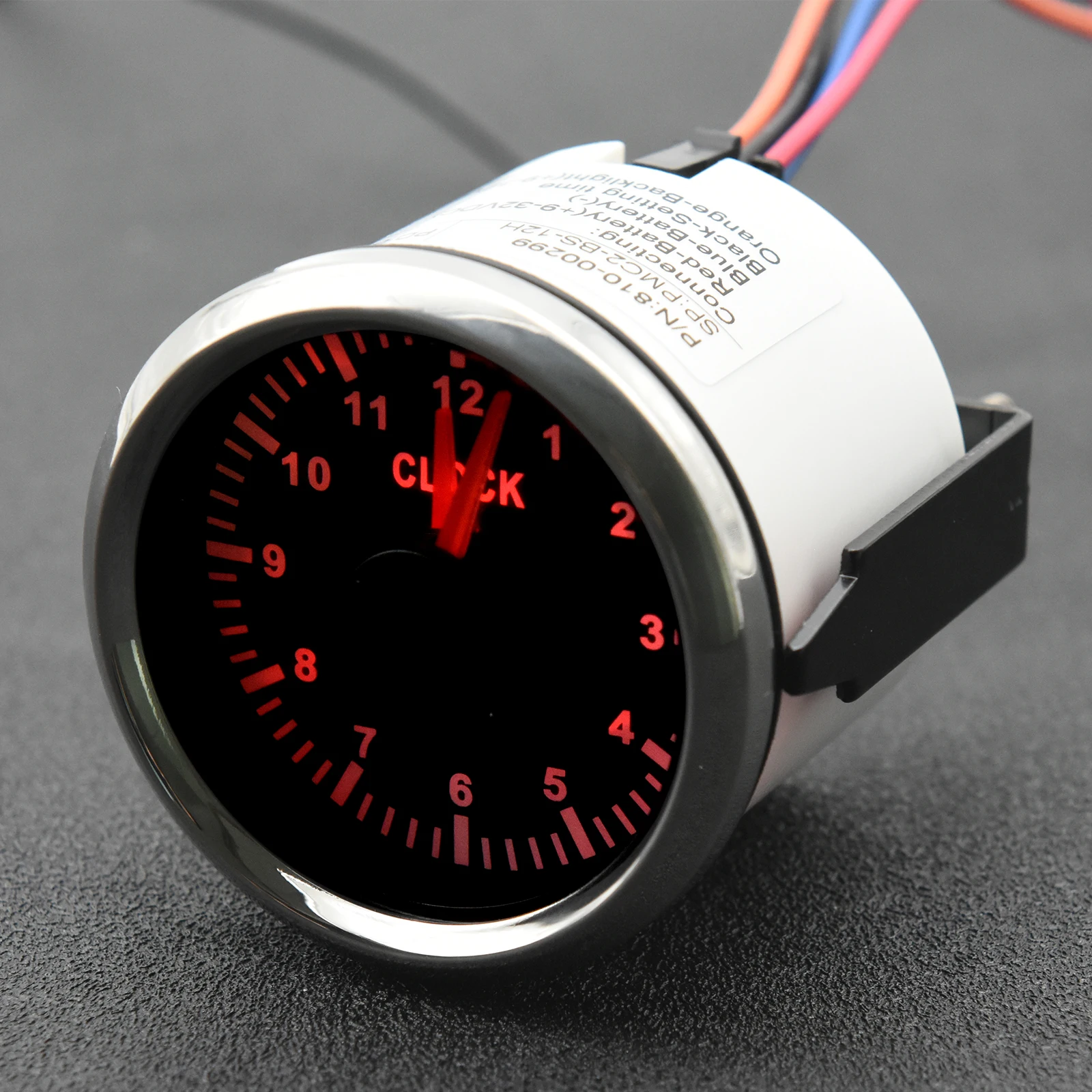 Водонепроницаемые часы, приборная панель с красной подсветкой, серебристо-черного цвета, 52 мм, диапазон измерения 0-12 часов, 9-32 В, для автомобиля, лодки, яхты