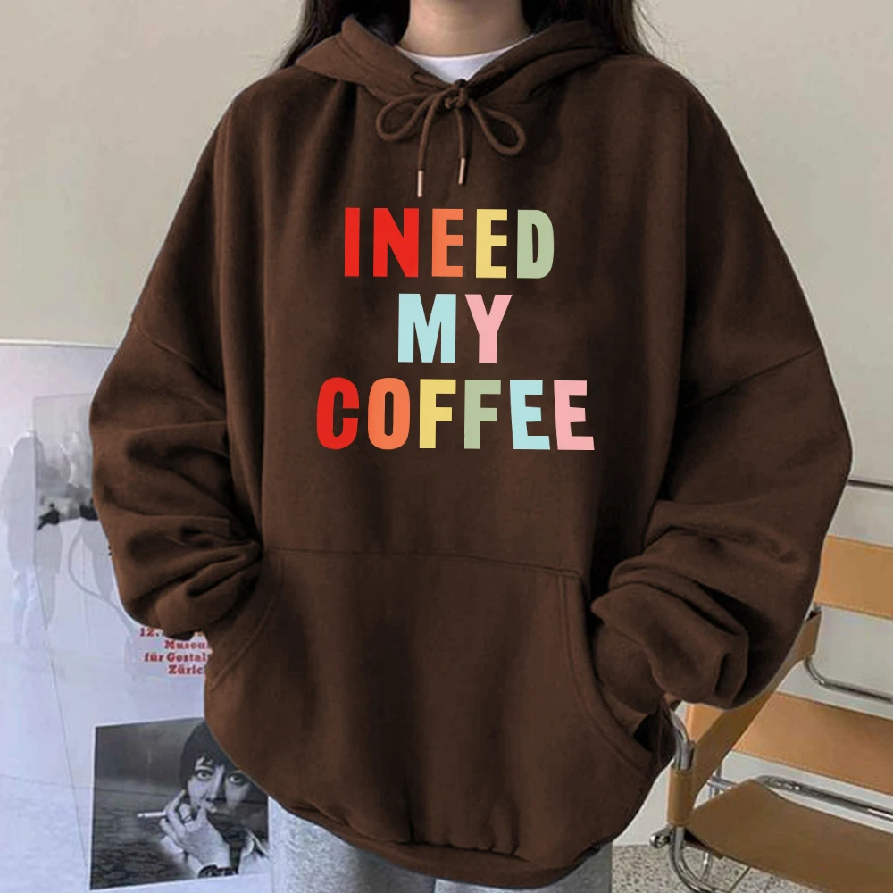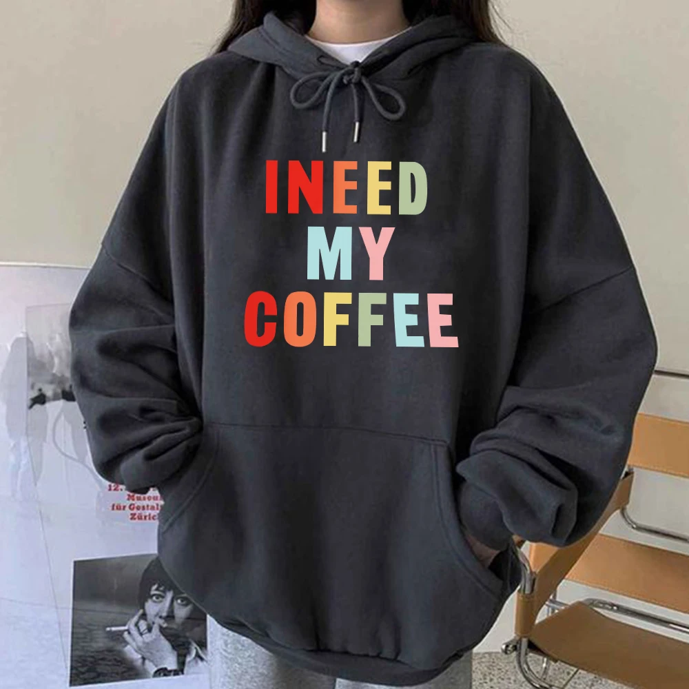 Женские толстовки с капюшоном с надписью «I Need My Coffee», свитшоты с открытыми плечами, топы с капюшоном большого размера, одежда, пуловер с капюшоном, Sudaderas