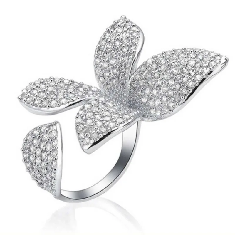 Женское Открытое кольцо с бабочкой Gu Li, украшение в стиле принцессы с супер-вспышкой и кристаллами, аксессуары для травы, регулируемое кольцо, ювелирные изделия