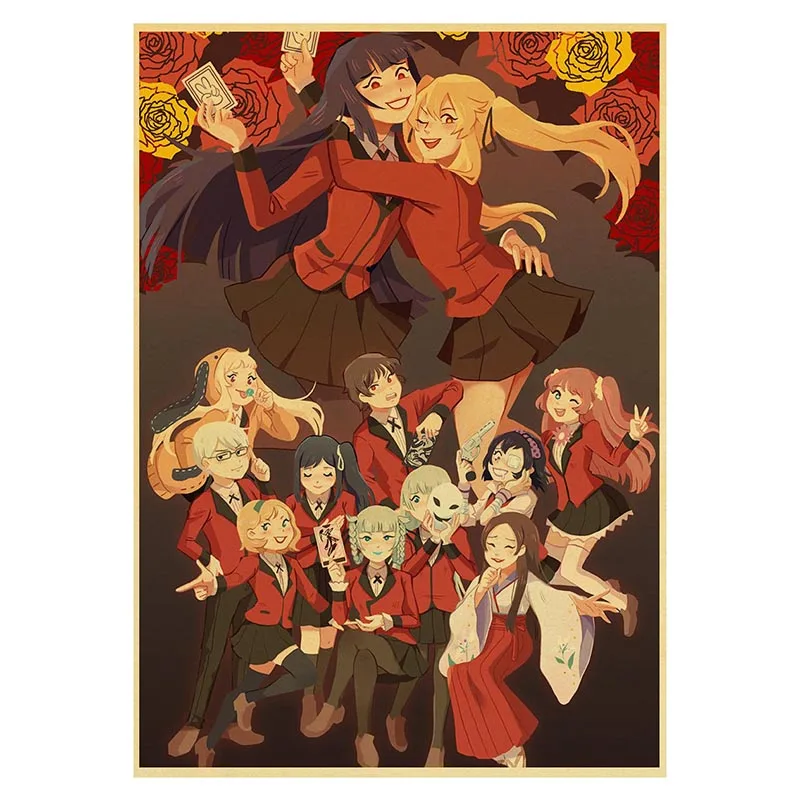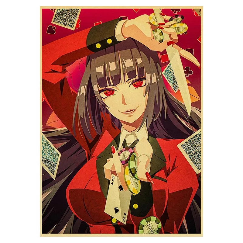Купите три и получите один бесплатно, японская анимация, Kakegurui Ретро плакат, крафт-бумага, бумажный плакат, художественный Декор для дома, кафе, печать плакатов