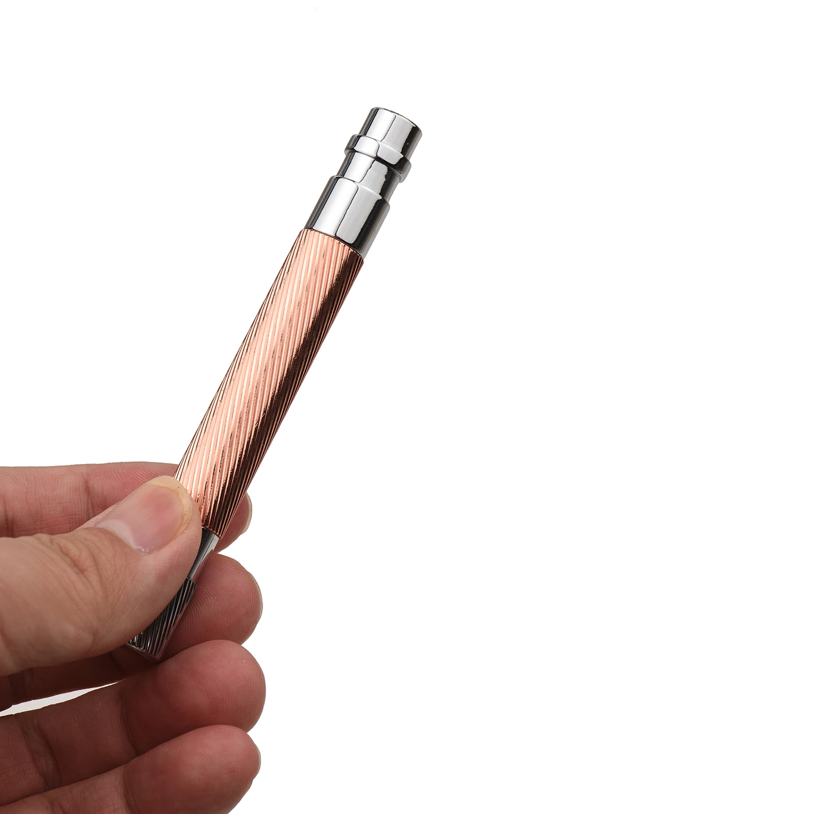 Особенности: Полностью изготовлен из нержавеющей стали, прочный и прочный, используется для длительного использования. Можно смешивать и сочетать с большинством бритвенных головок. Моющийся, его можно очистить водой после использования. Нескользящий дизайн, легко и удобно держать. Идеально подходит для ежедневного бритья бороды. Примечание: головки бритвы не включены в этот продукт. Спецификация: Тип: инструмент для бритья Материал: нержавеющая сталь Цвет: розовое золото, черный, серебристый, золотой (опционально) Диаметр для бритвенной головки: 0,5 см Размер изделия: прибл. 10*1,1 см Размер посылка: прибл. 10*1,1*1,1 см Вес посылка: прибл. 59 г Посылка: 1 * сменная бритвенная ручка