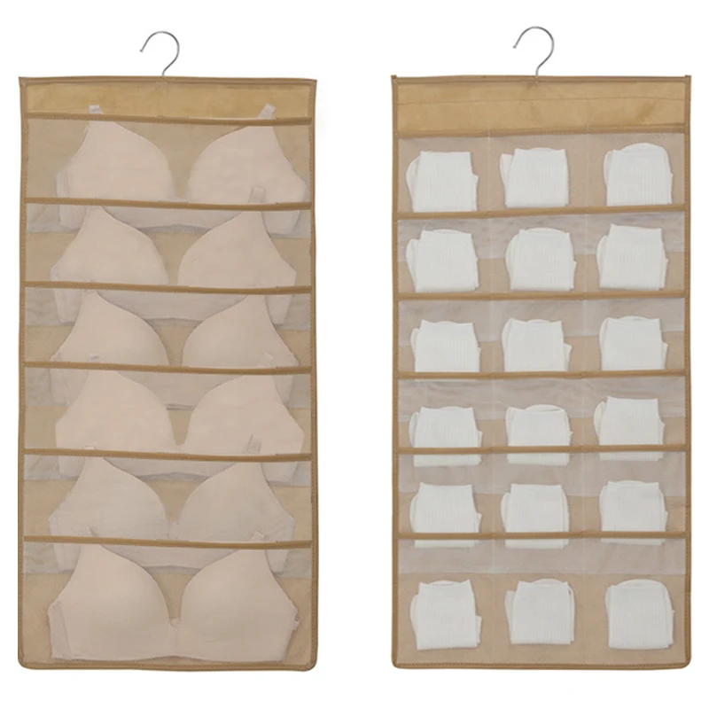 Двусторонняя прозрачная подвесная сумка, складная сумка для хранения одежды, носков, бюстгальтеров, нижнего белья, вешалка, сумки для хранения, органайзер для бюстгальтеров