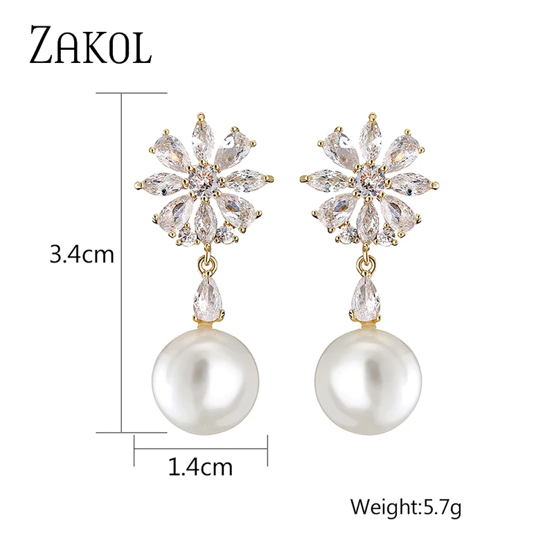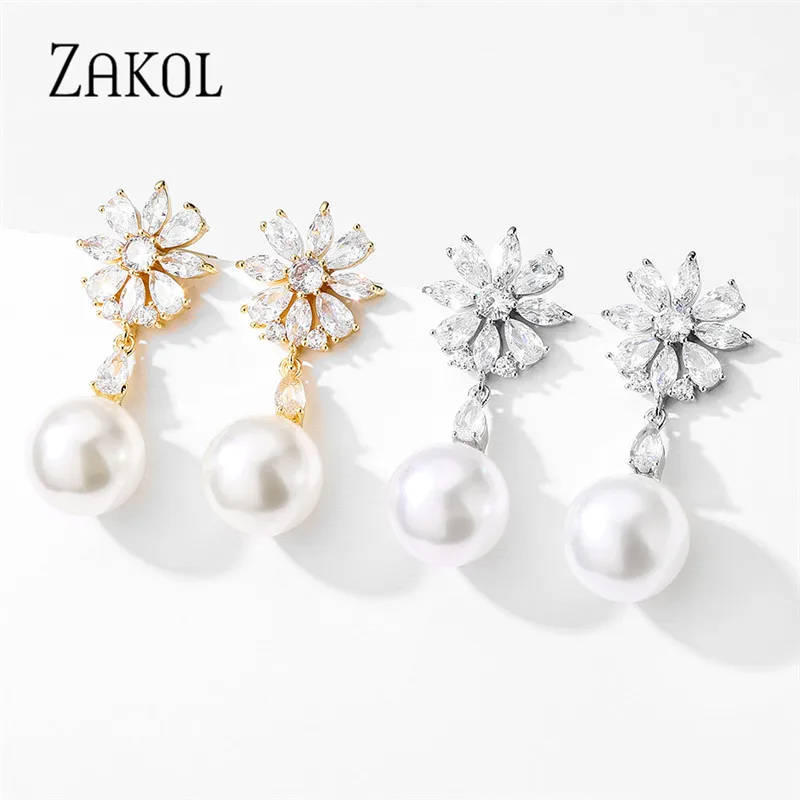 ZAKOL новые элегантные серьги-капли воды с цветами, очаровательные жемчужные серьги для свадебной вечеринки для невесты и подружки невесты EP2840