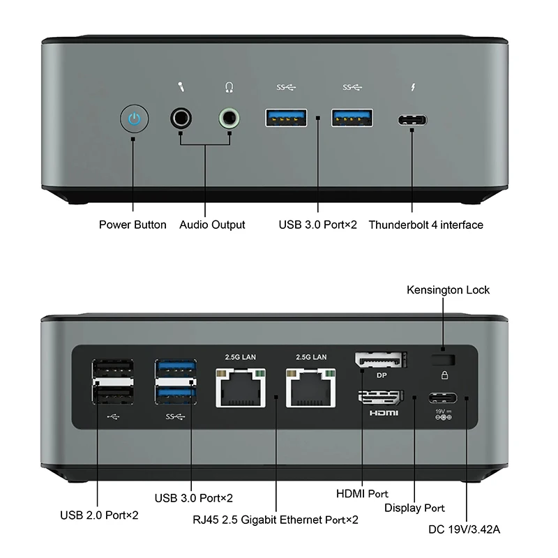 2 порта RJ45 2,5 Gigabit Ethernet2 порта USB 2.0 (левая сторона задней панели)4 x USB 3.1 порт (Gen2)1 порт USB-C1 x DisplayPort1 х аудиоразъем1 х HDMI-совместимый1 x прозрачная CMOSРазмер изделия: 149,6 × 149,6 × 55 мм