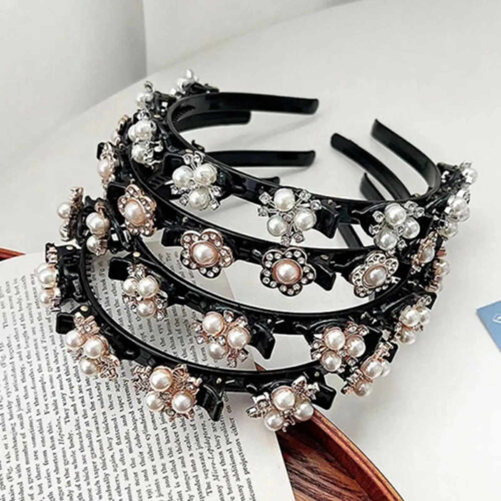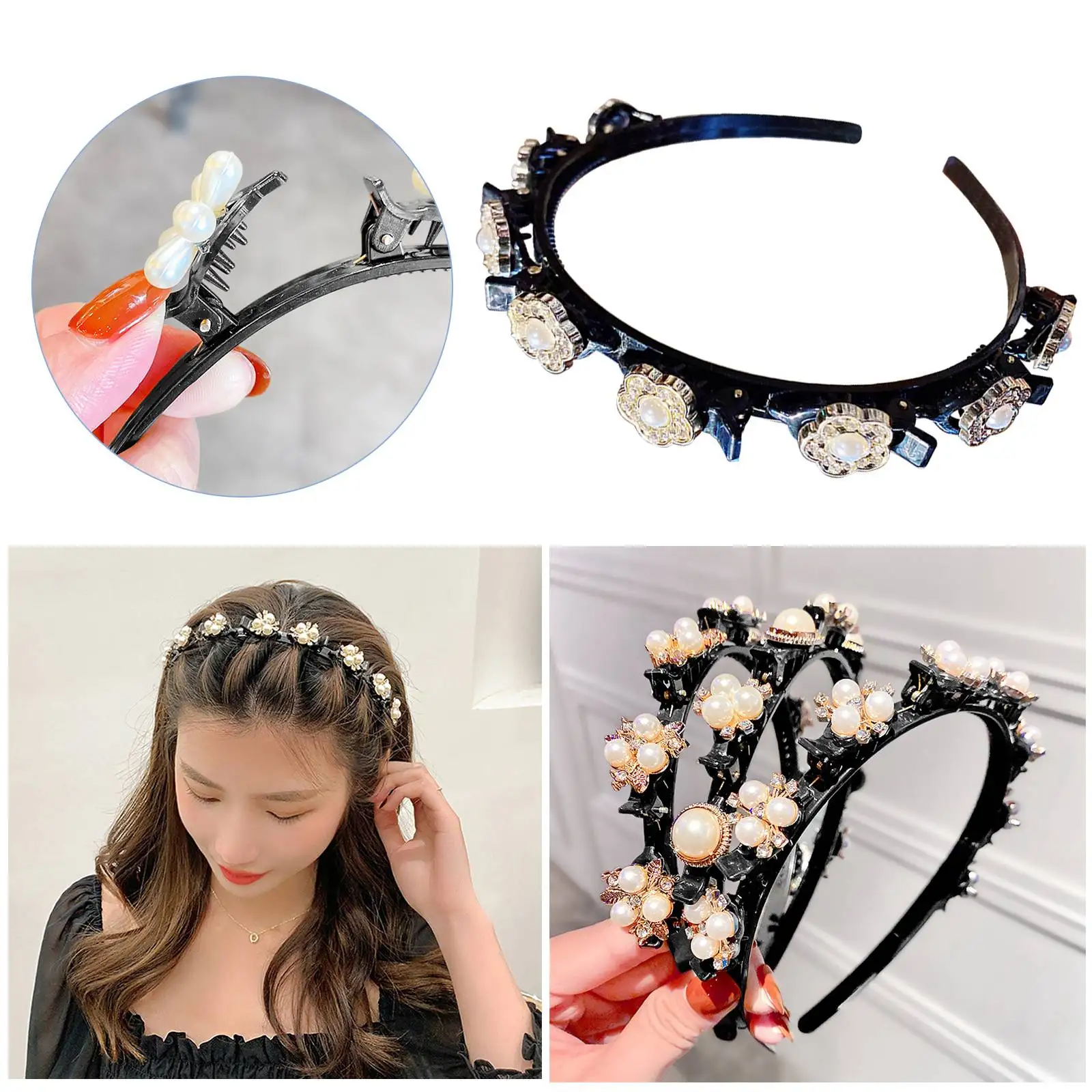 Повязка для волос унисекс, с жемчугом, для Стразы, двойные зажимы д...