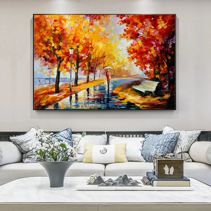 Абстрактная романтическая прогулка под дождем картина маслом красочный пейзаж плакаты и принты настенные картины для гостиной домашний декор