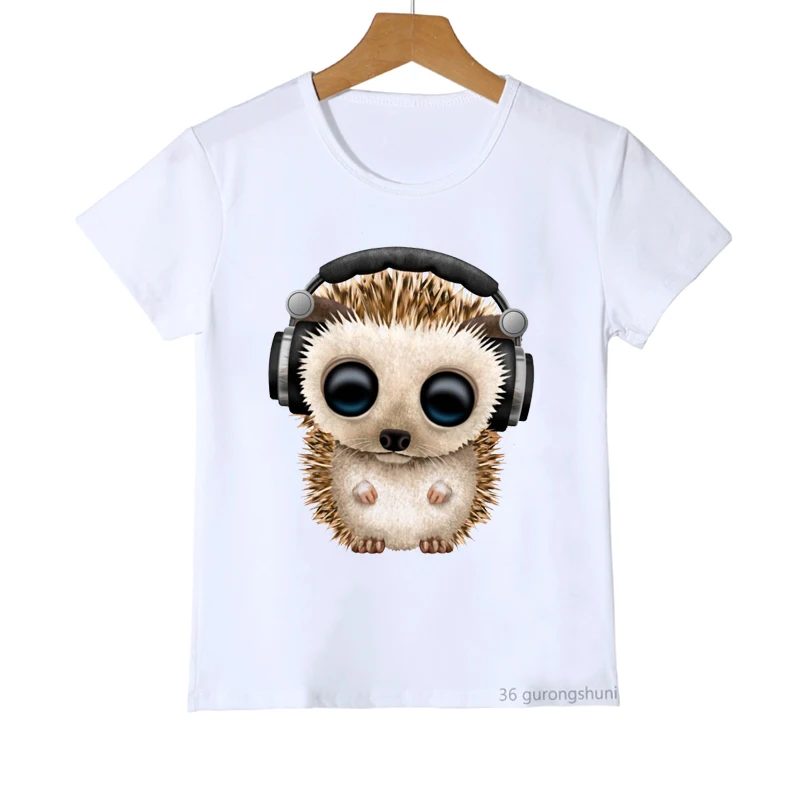 Забавные детские футболки, милый еж, Рождественский мультяшный принт для детей, Рождественская одежда, модные Универсальные футболки для мальчиков и девочек