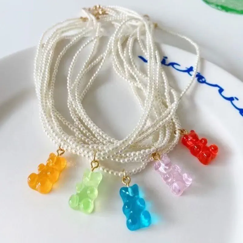 Элегантный Искусственный жемчуг прозрачный карамельный цвет кулон Медвежонок цепочка для ключицы ожерелье для женщин вечерние трендовые ювелирные изделия HUANZHI Новинка