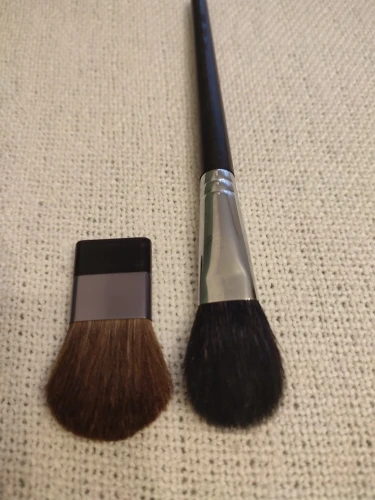 Кисть не плохая. не лезет, не колется, ворс натуральный, мягкий. Но имейте ввиду она маленькая и набита слабовато. Для румян маловата. Для хайлайтера самое то. Ручка пластмасса. Из-за этого виглядит дёшево. Она меньше чем моя кисть из румян.