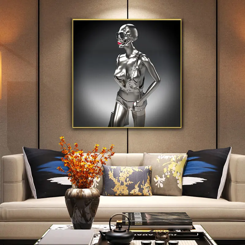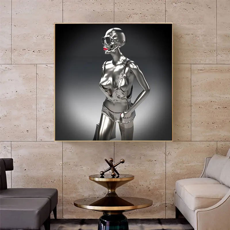 Металлическая фигурка сексуальная обнаженная женская статуя боди искусство на холсте картина на стену современные плакаты и принты для спальни домашний декор квадраты