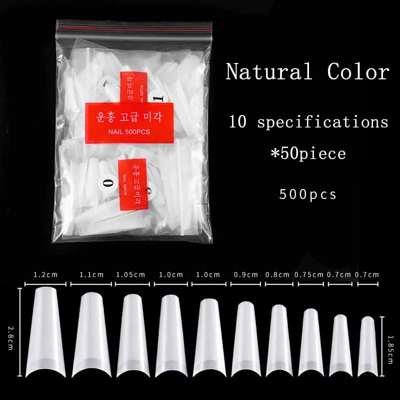10 размеров, 500 шт., искусственные Типсы для ногтей, французский Естественный прозрачный цвет, акриловые накладные ногти УФ-гель для ногтей украшение для маникюра сделай сам