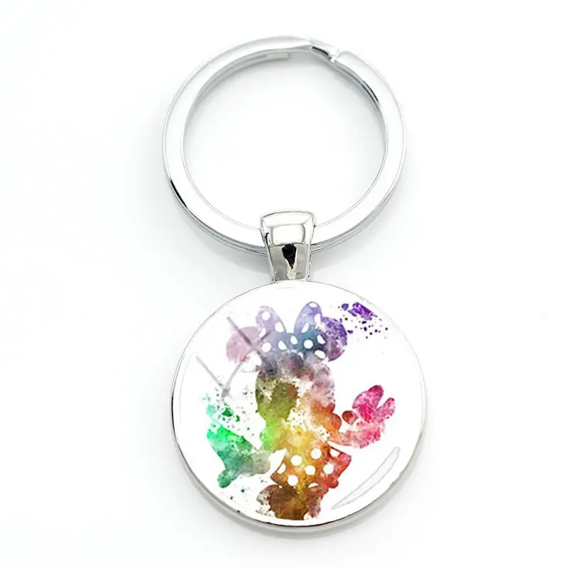 Дисней арт красочные персонажи шаблон брелоки Темперамент Модный стеклянный кабошон для кулона брелоки для женщин ювелирные изделия DSN44Изображение продукта: