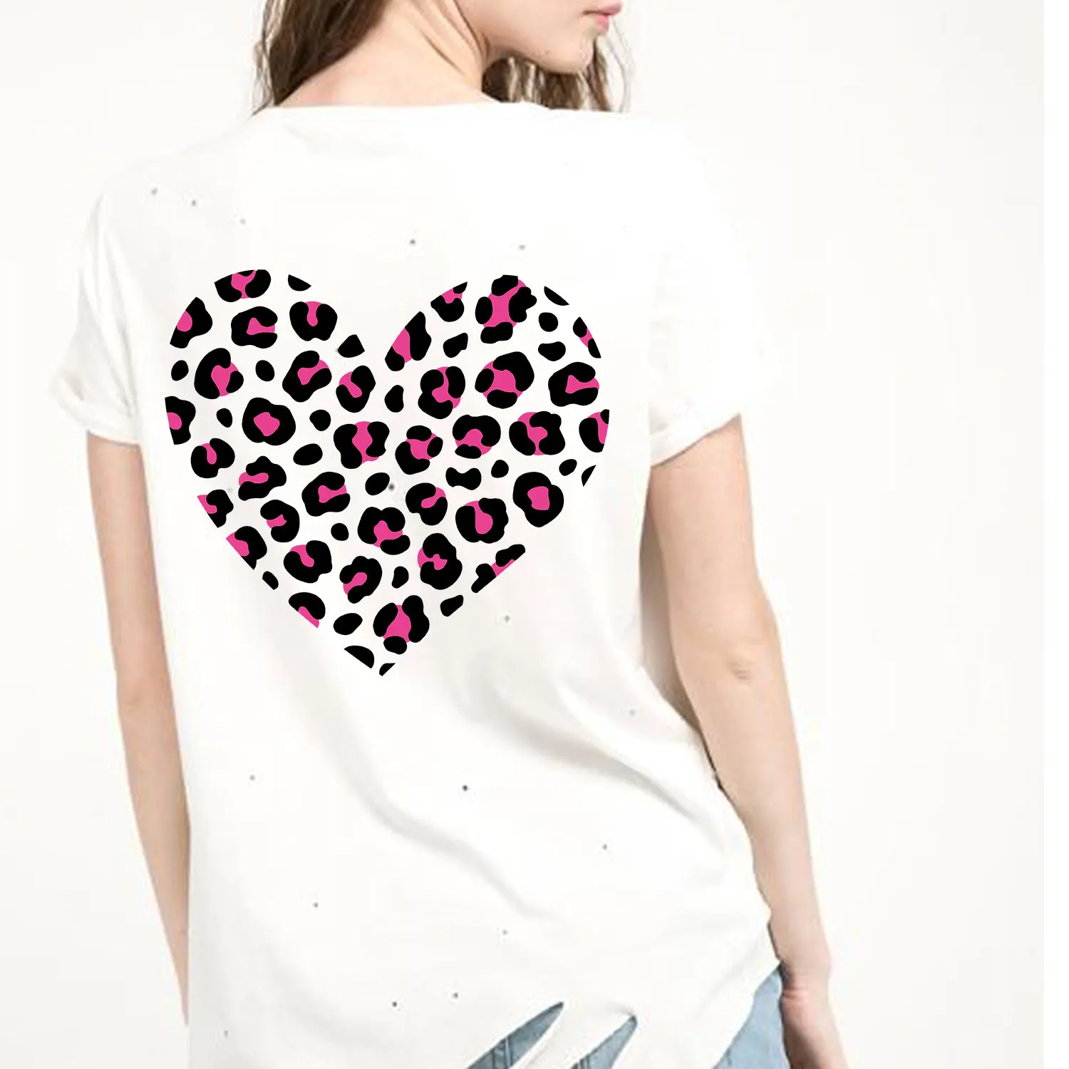 Термочувствительные нашивки Love Heart с леопардовым принтом, термотрансферные нашивки с термопринтом, термоклейкие нашивки для детской одежды, куртки
