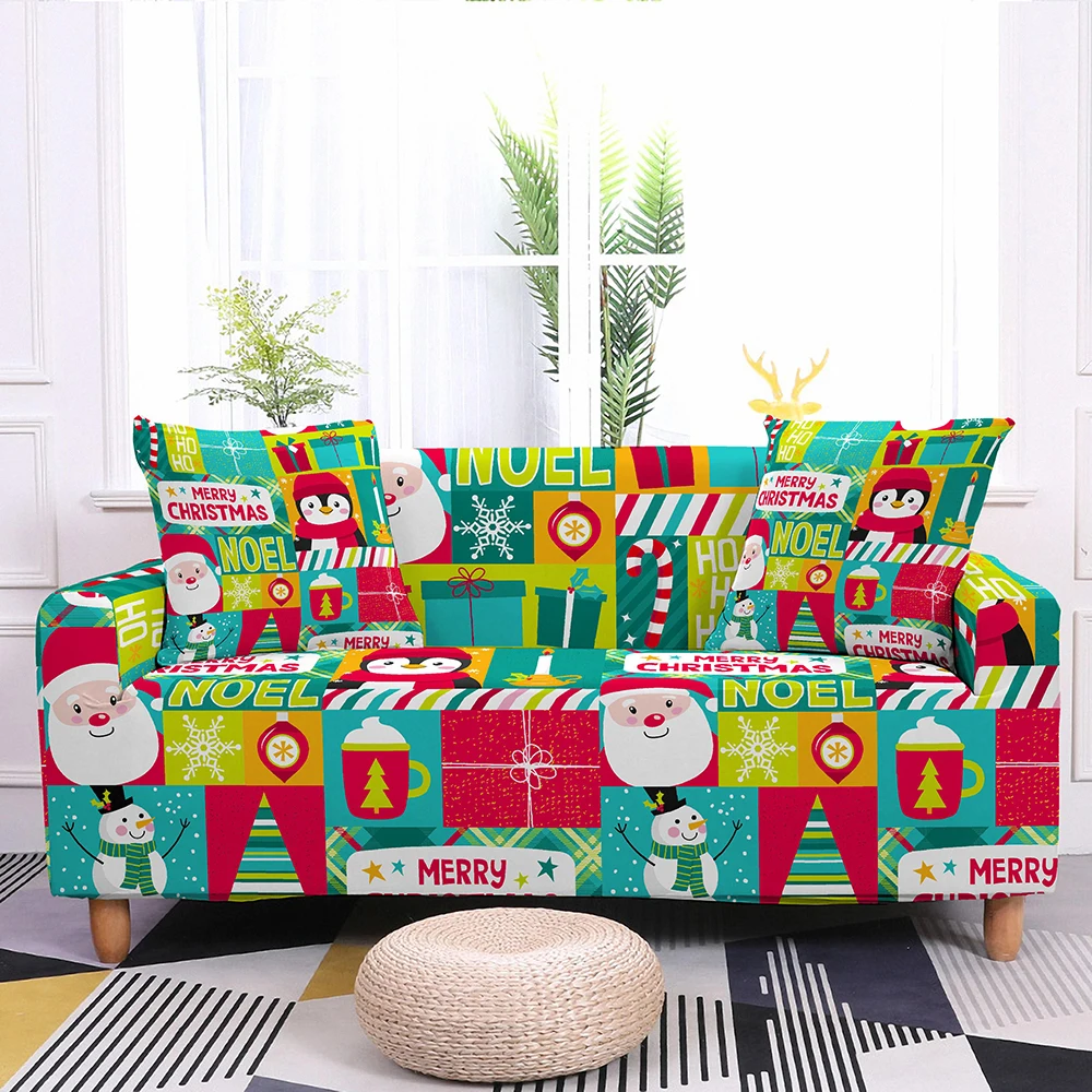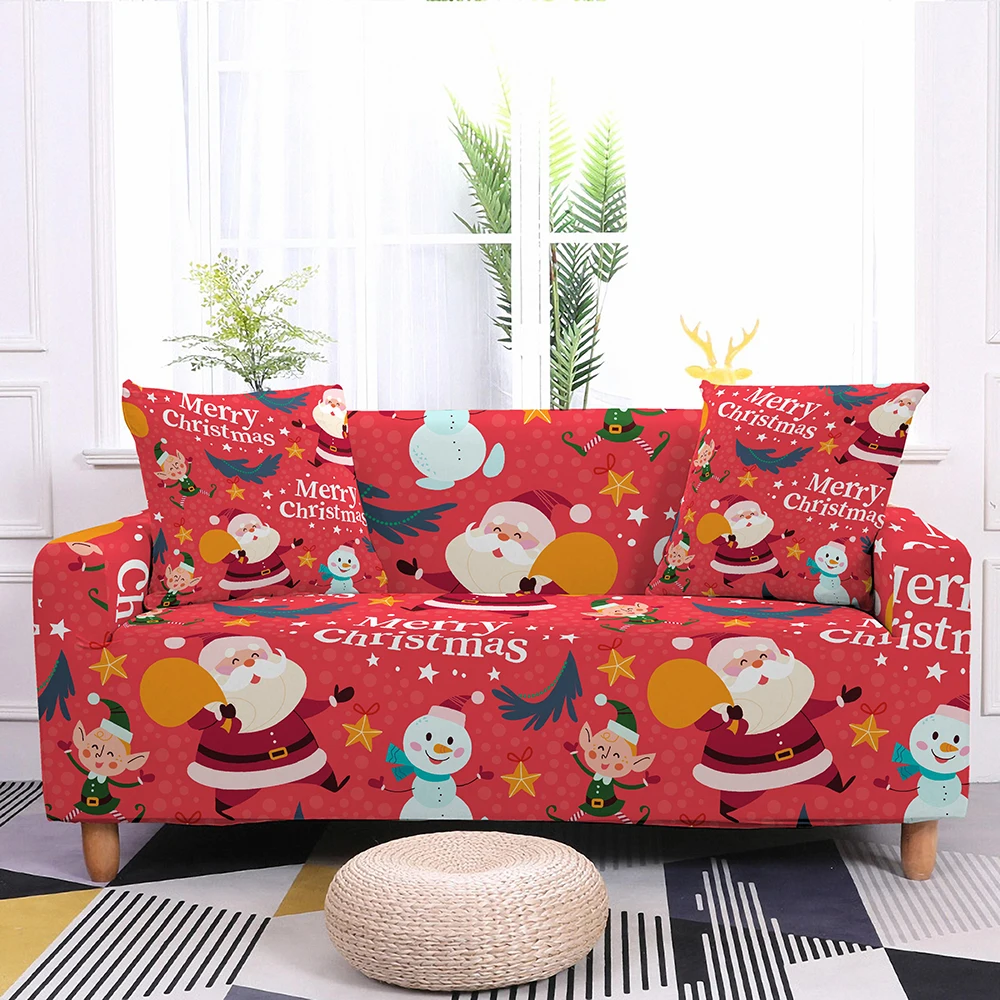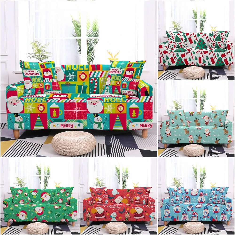 1234-местный эластичный чехол на диван, Рождественский чехол на диван с Санта Клаусом для гостиной, полноразмерный эластичный чехол на диван для домашних животных