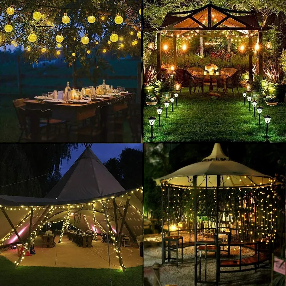 Светодиодная уличсветильник гирлянда на солнечной батарее с хрустальными шариками, 8 режимов, водонепроницаемая сказочная гирлянда, Рождественская декоративная лампа