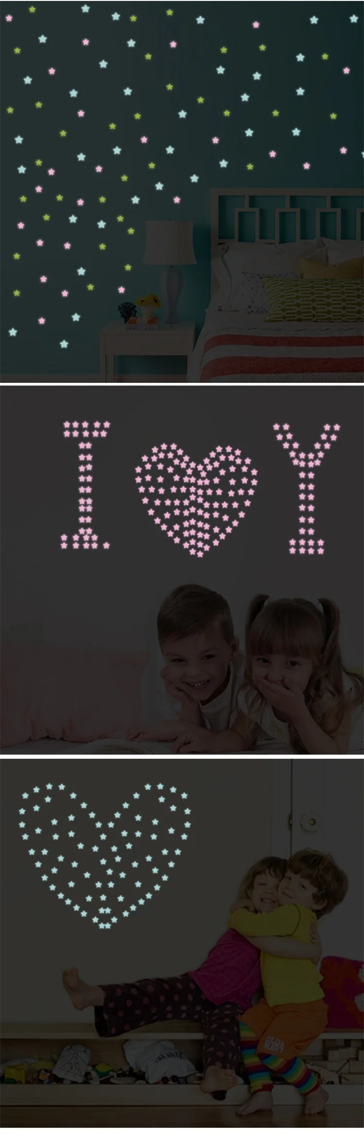 3D звезды светится в темноте наклейки на стену световой креативные ...