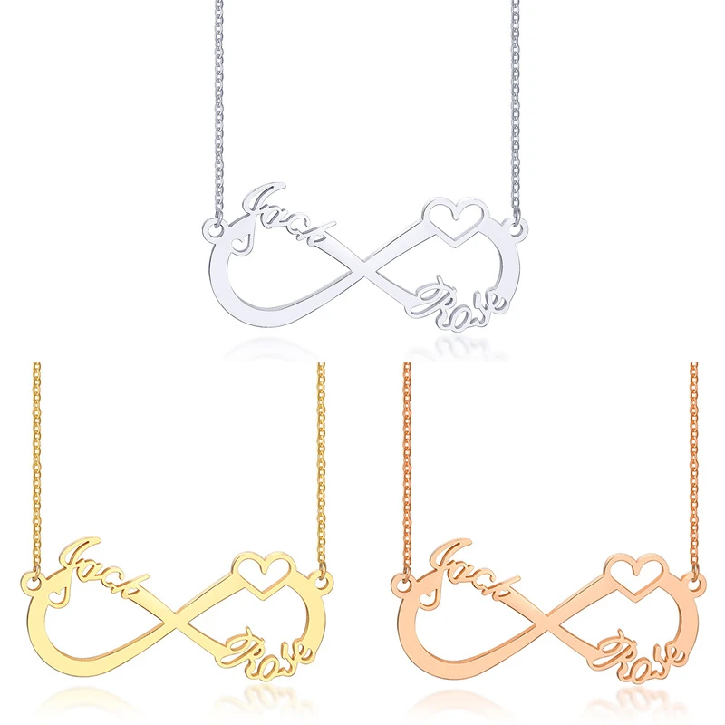 HOUWU сердце с бесконечностью ожерелье из нержавеющей стали именной кулон индивидуальное именное ожерелье для пары семьи дружбы