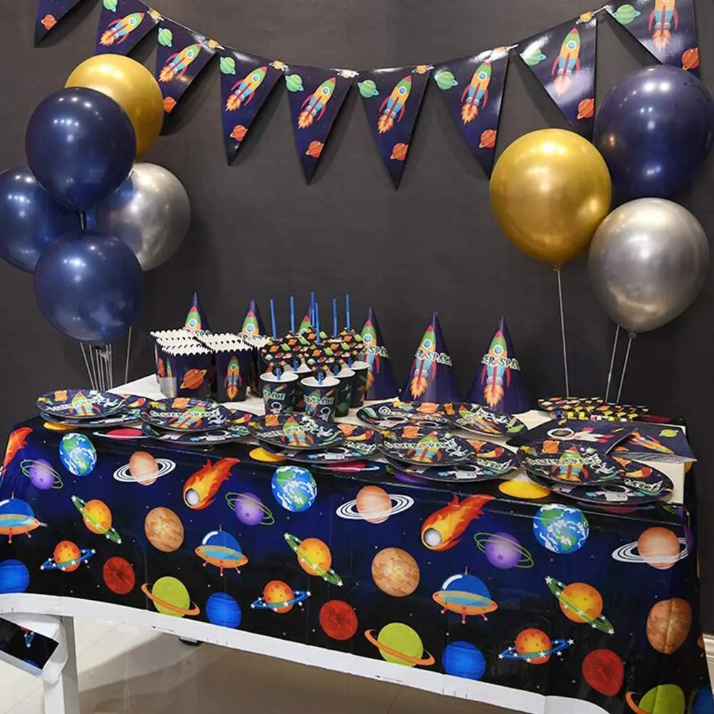 Одноразовая Скатерть Космос космонавт тематические праздничные товары для дня рождения, бумажные стаканы, тарелки для детей, подарки на день рождения