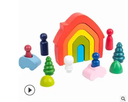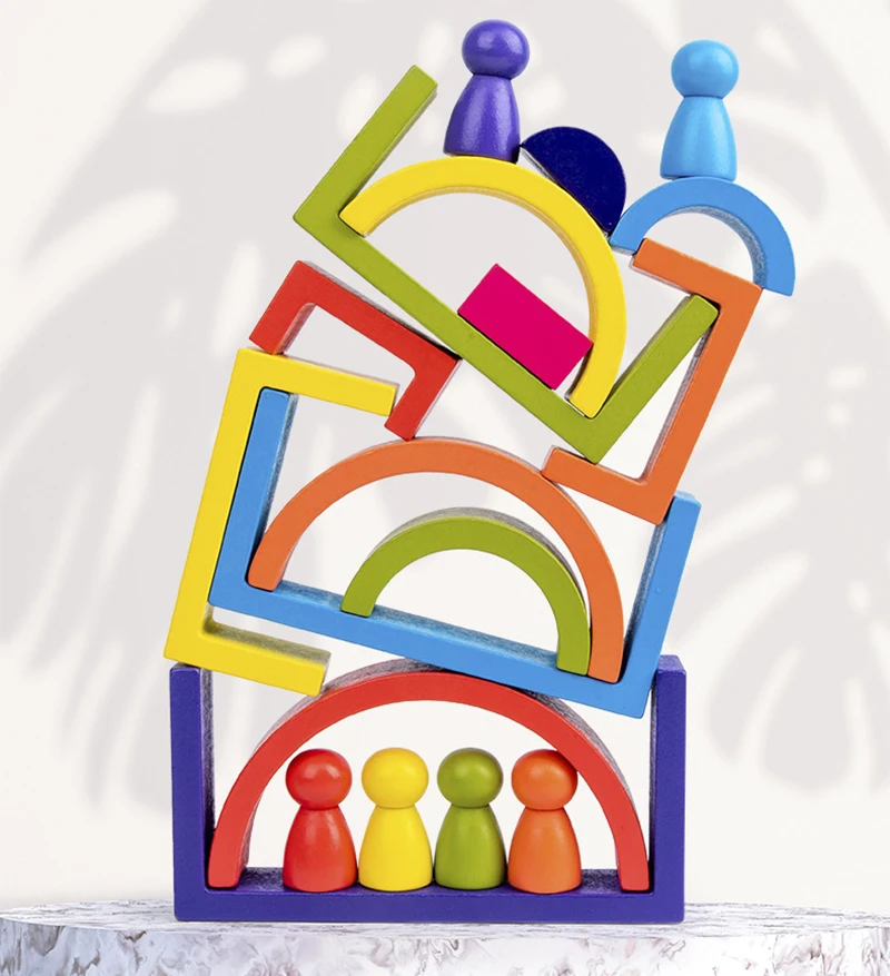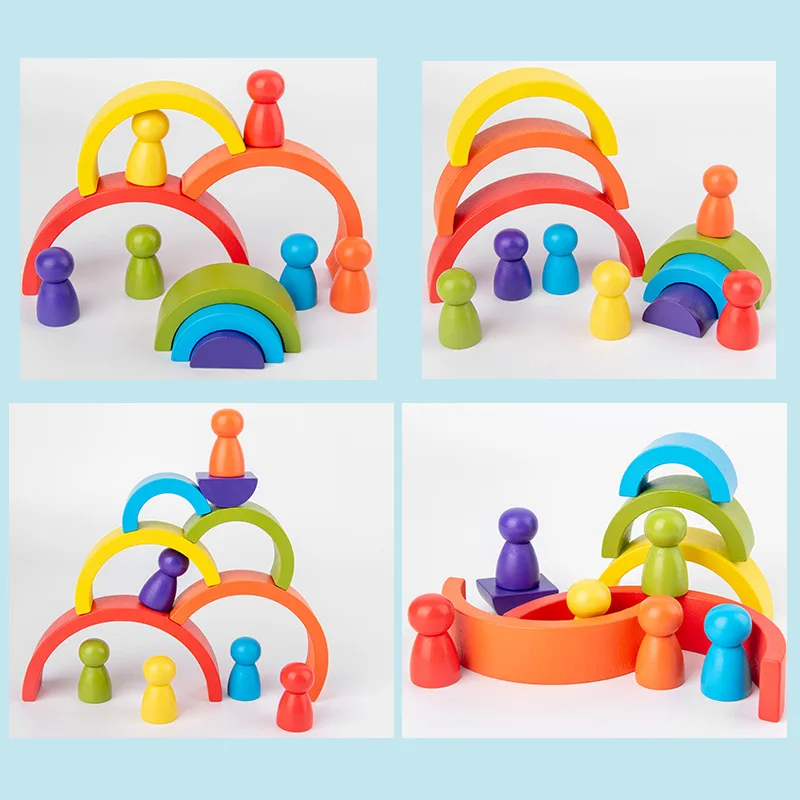 Деревянная Радужная игрушка для укладки, обучающая игрушка, Арка Монтессори, геометрические строительные блоки, развивающие игрушки для детей, подарки для малышей