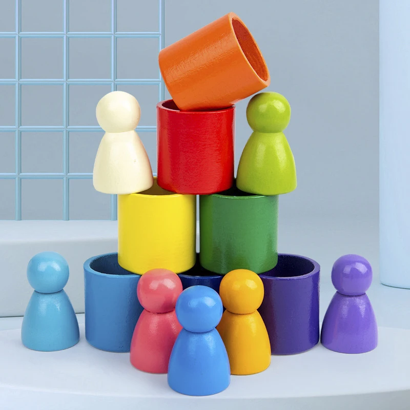 Обучающие деревянные игрушки, Набор радужных строительных блоков дл...