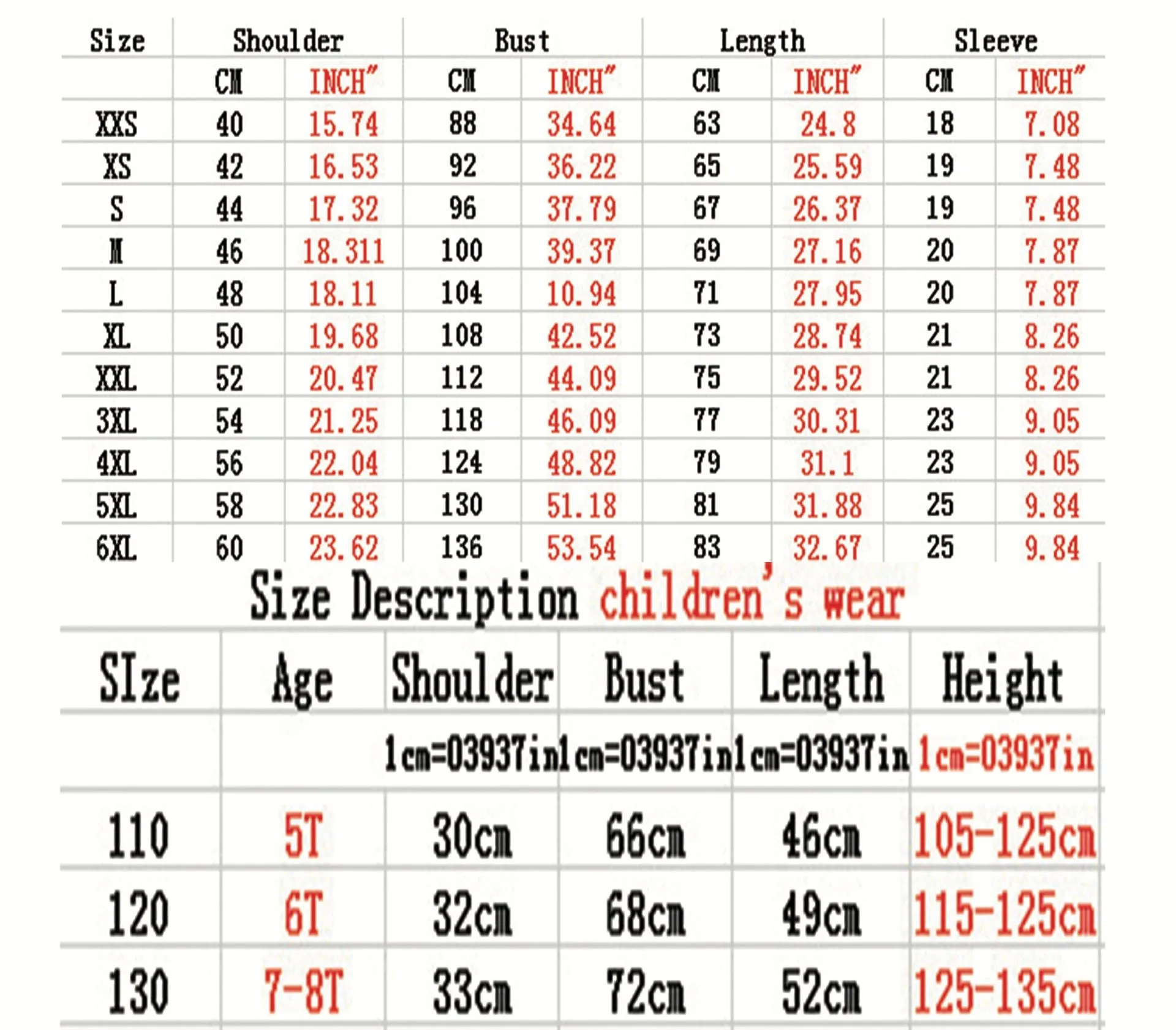 Tops SizeS / M / L /XL / 2XL / 3XL/4XL/5XL/6XL