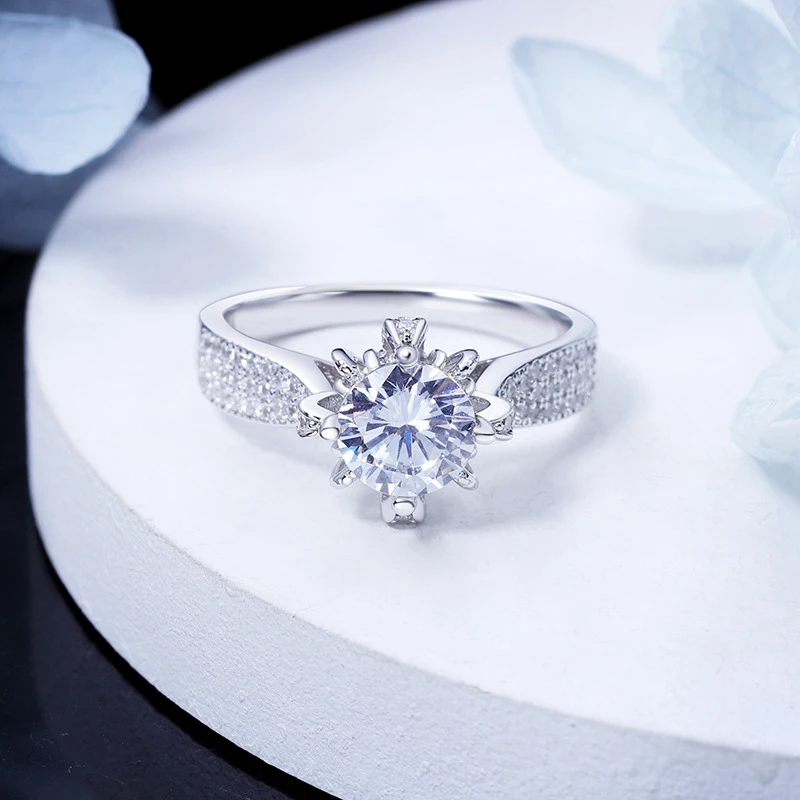 S925 серебро 1CT D муассанит кольцо с хризантемой прошли алмазное испытание высокое женское ювелирное изделие Свадебная вечеринка подарок на день рождения