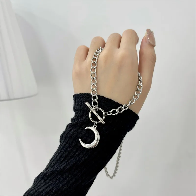 Ожерелье с подвеской в виде рога и Луны из нержавеющей стали, цепоч...