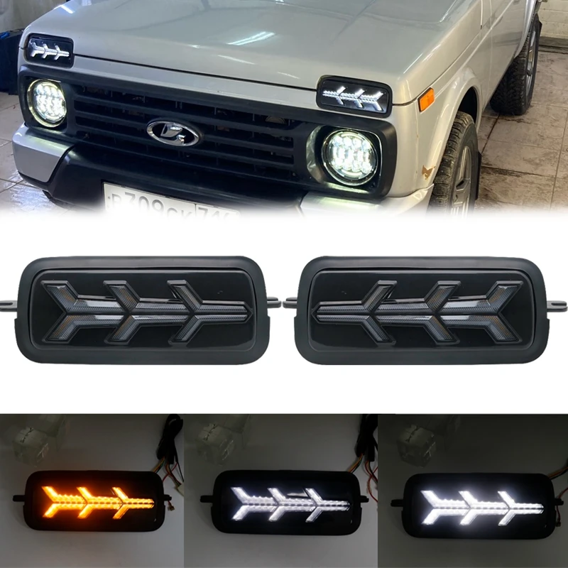 Дневные ходовые огни для автомобилей Lada Niva 4X4 2121, пара городских указателей поворота, дневные ходовые огни, защитный чехол
